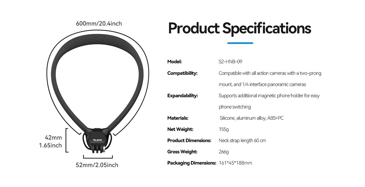 A TELESIN é especializada em acessórios práticos e fáceis de usar para câmeras de ação e smartphones. O Suporte de Pescoço SE 2.0 é uma evolução dos modelos anteriores, aprimorado com base no feedback sincero dos usuários para oferecer: